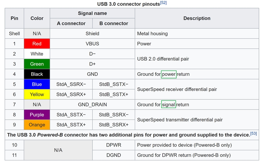 VBUS/GND: shared by USB2/3; D-/D+: USB2 only.